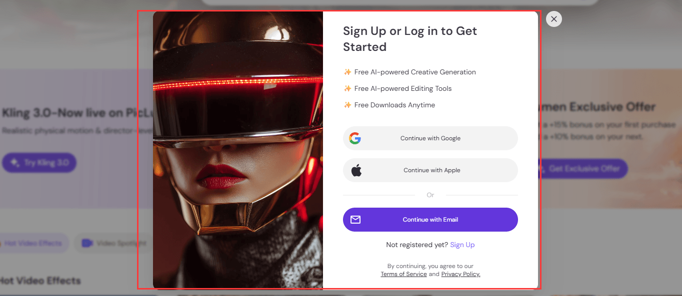 點擊頁面右上角的「免費開始」按鈕,畫面會跳出登入視窗。