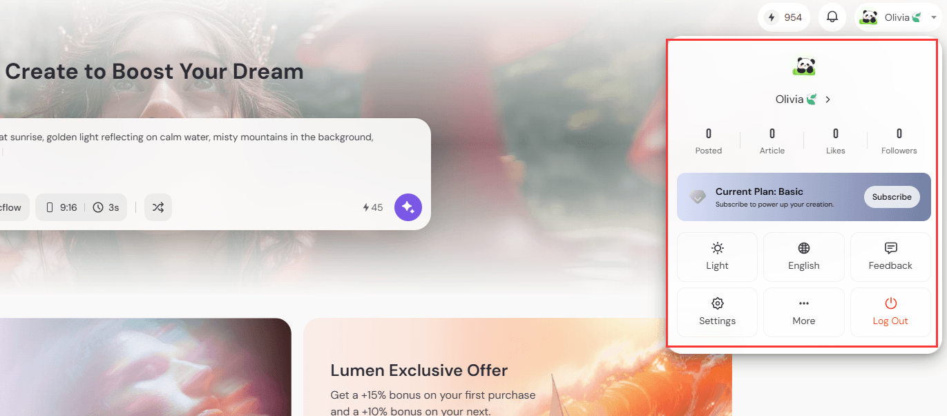 PicLumen 是一個集 AI 影片與圖片生成功能於一身的平台與社群。你可以輕鬆創作出令人驚豔的影片與圖片。現在,就一起來看看如何使用 PicLumen 吧。