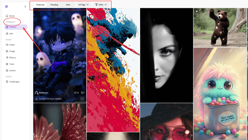 在左側側邊欄的「Studio」下點擊「Image」進入 圖片生成頁面,或使用首頁上方的工作區。